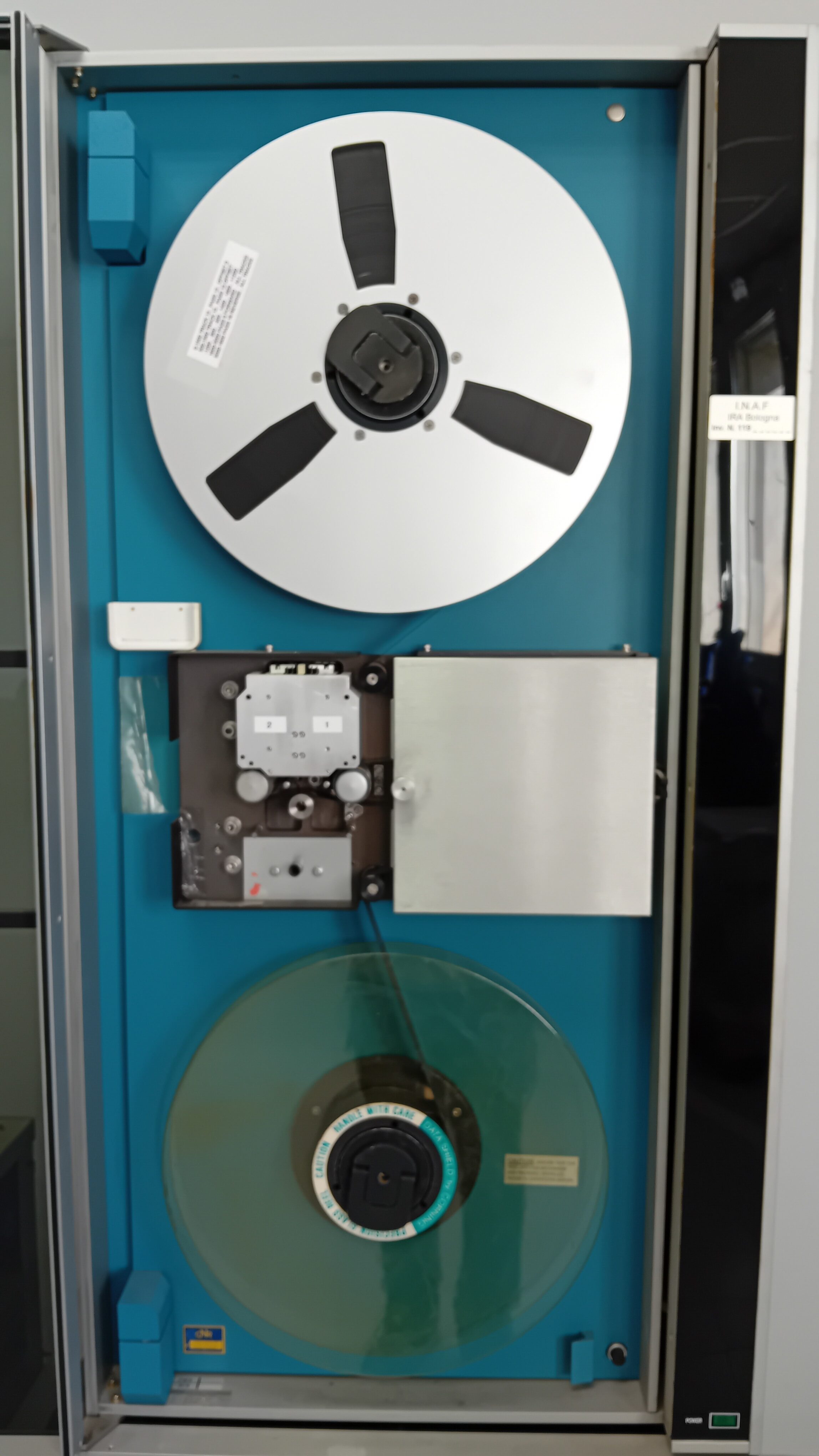 La capienza era decisamente ridotta. Si passò poi ai nastri (fig. 16b), che inizialmente erano enormi ma poco capienti: potevano contenere solo 15 minuti di osservazione ciascuno e dato che la durata delle osservazioni era anche allora di diverse ore era un delirio dover cambiare i nastri quattro volte l’ora, specie di notte.