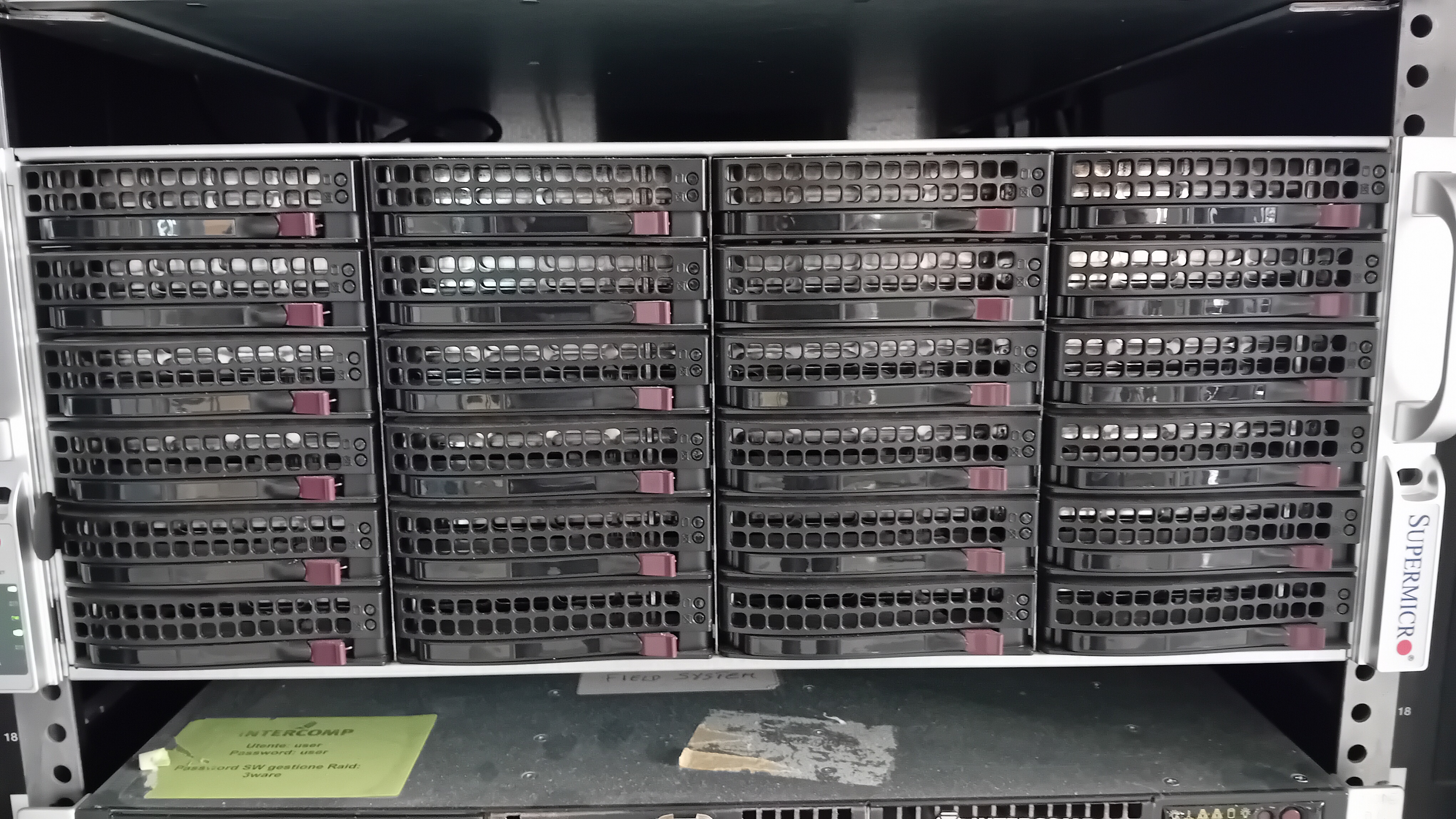 I pacchi-disco venivano inseriti in un computer appositamente costruito (fig. 16d) che provvedeva a registrare il dato in modalità fuzzy, per consentire di salvare le informazioni anche se si fossero guastati due hard disk su otto. Si cominciò con una capienza doppia rispetto ai nastri, si terminò con una capacità di 32 Tbyte per pacco-disco. Come si può notare in tutti questi casi il supporto magnetico di registrazione era rimovibile. Infatti, l’unico sistema in grado di portare efficacemente i dati al correlatore era la posta. Non esisteva una rete sufficiente da permettere il trasferimento di dati via web. Adesso che la Stazione di Noto è connessa via fibra ad una velocità di 10 Gb/s, siamo in grado di trasferire enormi moli di dati in tempi ragionevoli. Questo permette di registrare i dati su supporti non rimovibili dai quali il correlatore li preleva direttamente attraverso la rete.